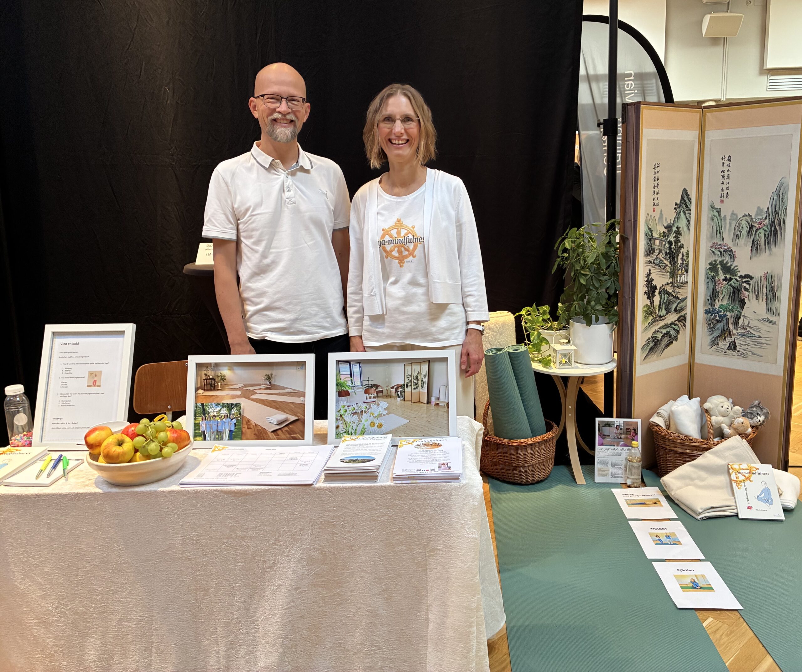 Vi ville skapa en monter som skulle ge inspiration att skapa en lugn plats hemma för yogaövning. Det ger stöd åt yogapraktiken. En plats för stillhet och ro. Många uppskattade vår monter och vi var mycket glada för det.
